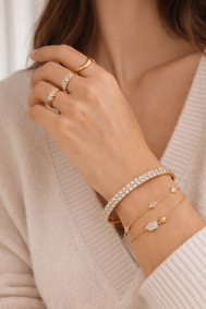 Unser Schmuck erzählt eine Geschichte von Handwerkskunst, Qualität und Leidenschaft entworfen, um zu inspirieren und deine einzigartige Reise zu feiern. Jedes Detail ist sorgfältig durchdacht und verbindet klassische Kunstfertigkeit mit modernem Design, um Stücke zu schaffen, die ebenso bedeutungsvoll wie schön sind.